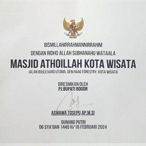 1 Nopember 2022 adalah hari bersejarah didirikannya Yayasan Al Athoillah Kota Wisata Cibubur yang merupakan Yayasan Nir Laba, beralamatkan di Jalan Wisata Utama Denhaag Forestry, RT 001, RW 017, Desa Nagrak , Kecamatan Gunung Putri, Kabupaten Bogor , Propinsi Jawa Barat, dihadapan Notaris Dhyah Madya Ruth, S.N, S.H, M.Kn dan telah disyahkan berdasarkan keputusan Menteri Hukum dan HAM Republik Indonesia Nomor AHU.0022817.AH.01.04 Tahun 2022